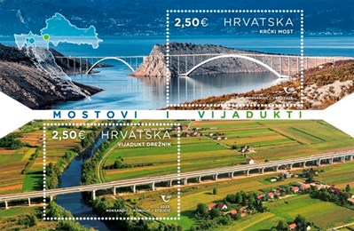 Napomena: Motivi: Krčki most i vijadukt Drežnik Prigodni poštanski blok čine dvije marke, a Hrvatska pošta izdala je i prigodnu omotnicu prvog dana (FDC).