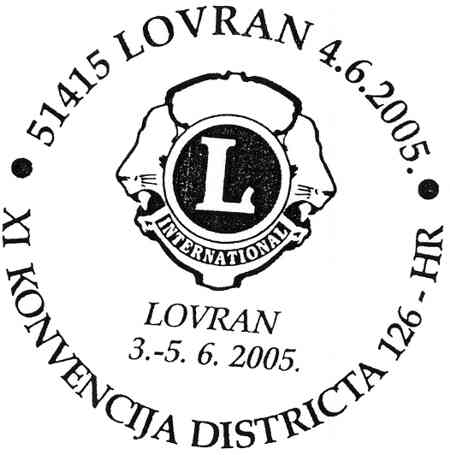 Prigodni žig je u uporabi 4.6.2005. u poštanskom uredu 51415 Lovran.