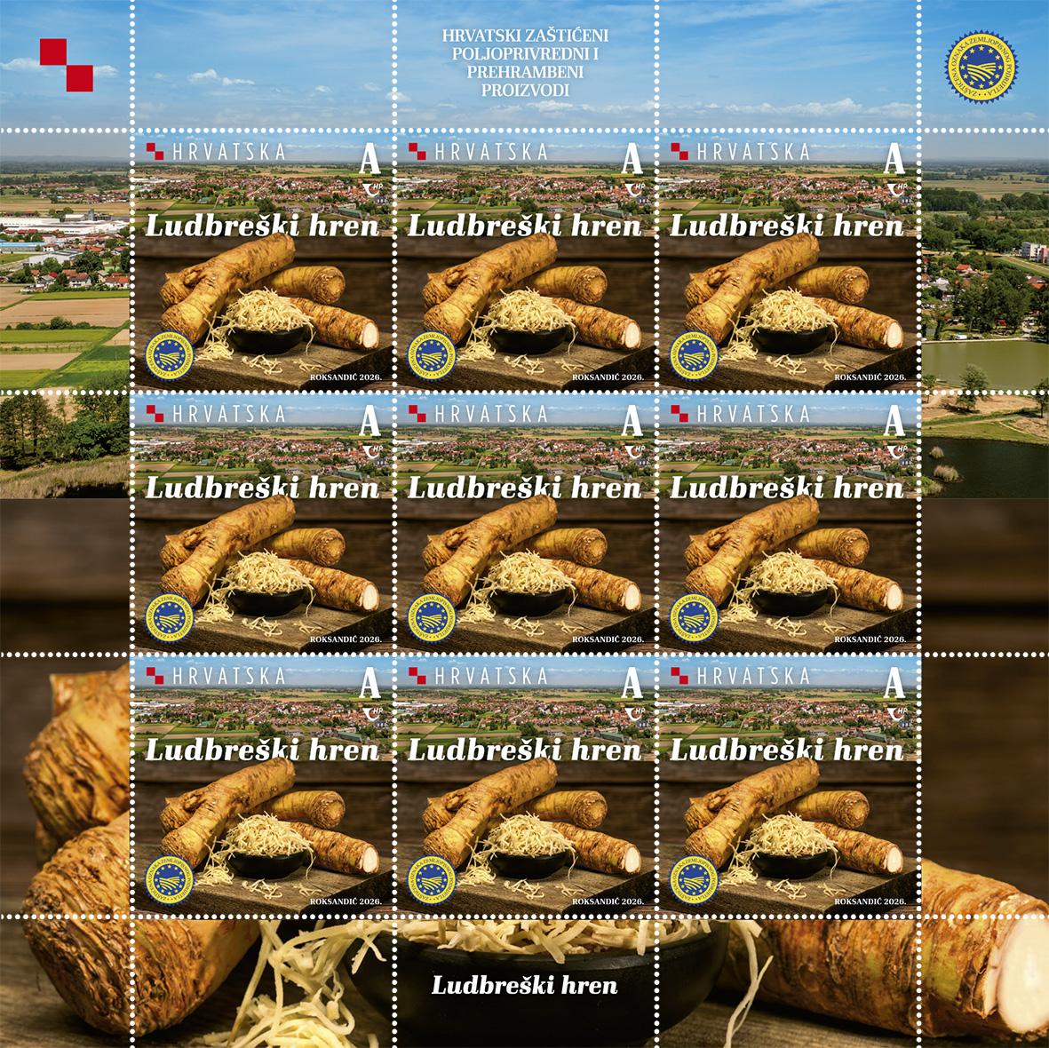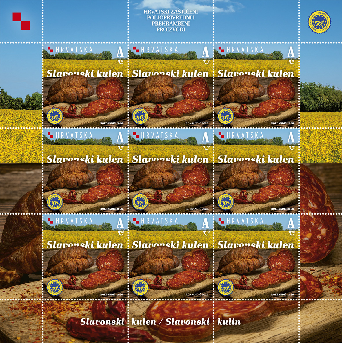 Hrvatska pošta stavit će u optjecaj 15. travnja tri nove prigodne marke iz serije „Hrvatski zaštićeni poljoprivredni i prehrambeni proizvodi“ koja izlazi svake druge, parne, godine. Ovaj su put na markama motivi slavonski kulen (ili slavonski kulin), sir lički škripavac i ludbreški hren. Autor maraka nominalne vrijednosti označene slovnom oznakom A zagrebački je dizajner Dean Roksandić. Nove marke tiskane su tehnikom višebojnog ofseta u arčićima s 9 maraka i u nakladi 25.000 primjeraka po motivu, a izdanje prati i prigodna omotnica prvog dana (FDC).Nove marke s prikazima naših zaštićenih poljoprivrednih i prehrambenih proizvoda potražite od 15. travnja u poštanskim uredima ili na www.epostshop.hr .